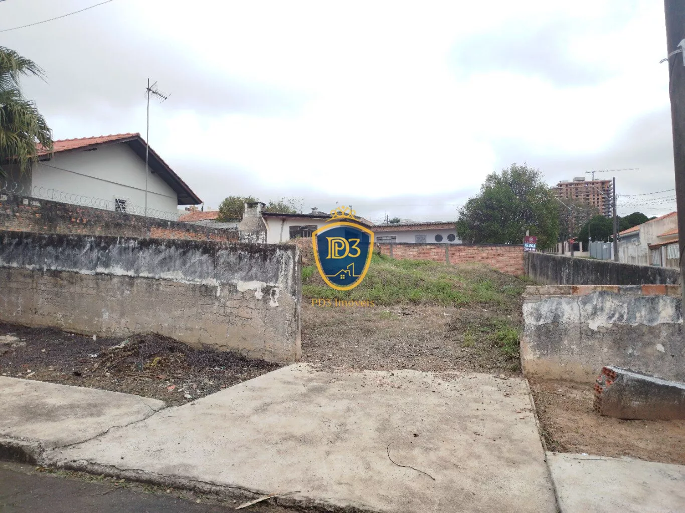 Possui muro em volta do terreno inteiro e é plano.