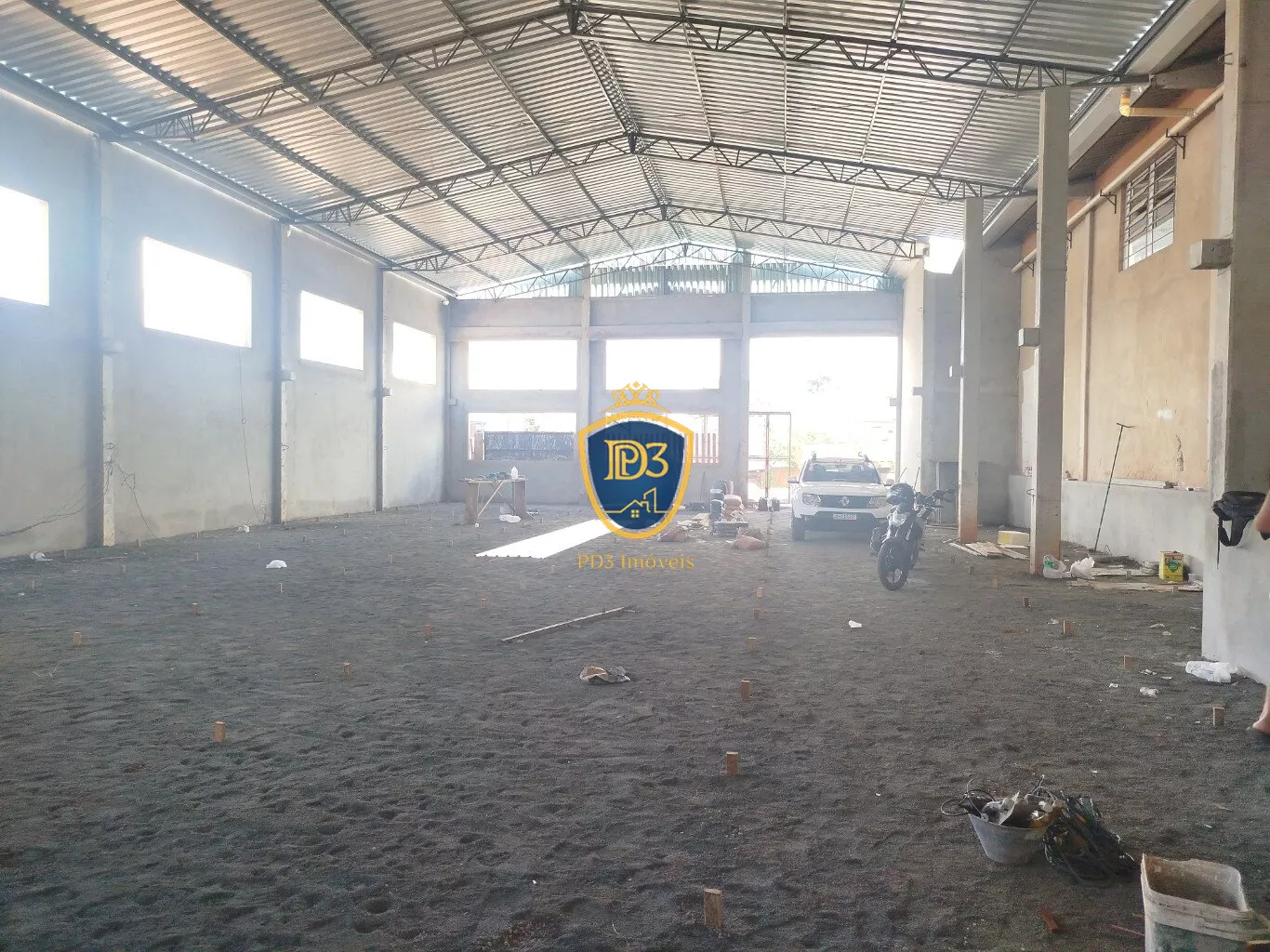 Este barracão esta em fase final de acabamento, possui pé direito com 7 metros de altura e porta de acesso com 5 metros.