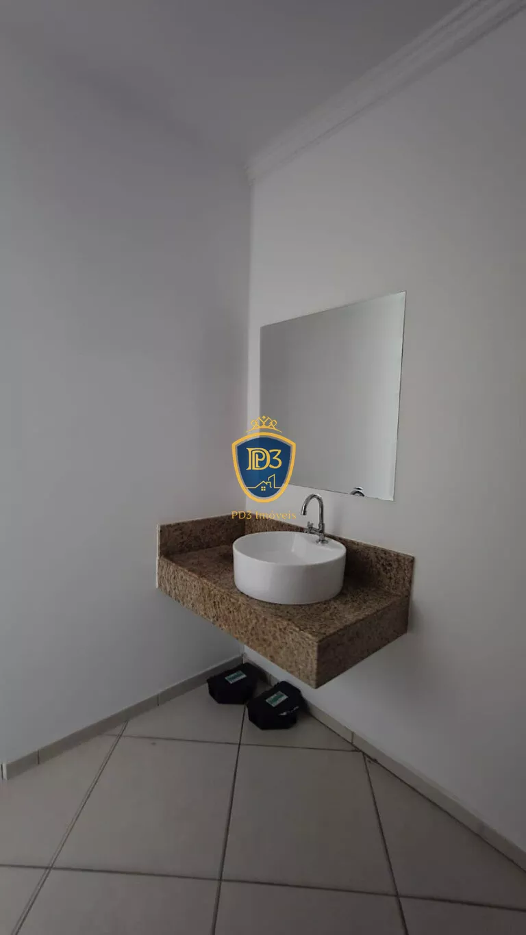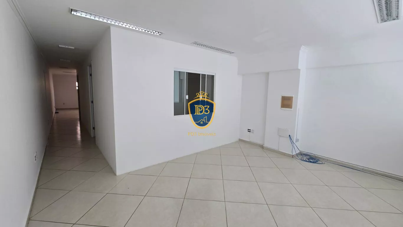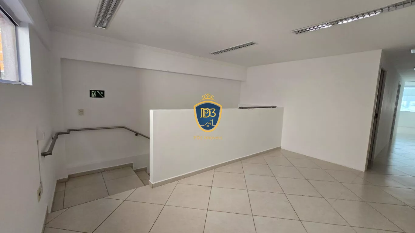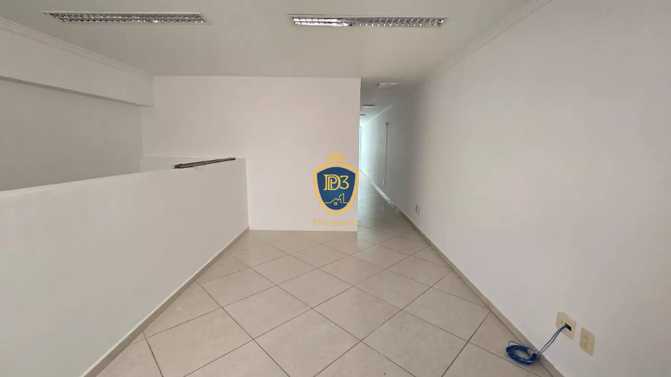 Já o piso superior tem 79 metros e conta com amplo espaço dividido em três salas, sendo uma delas para reunião, mas há espaço para fazer uma quarta sala.