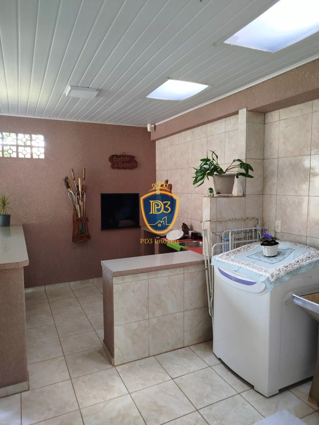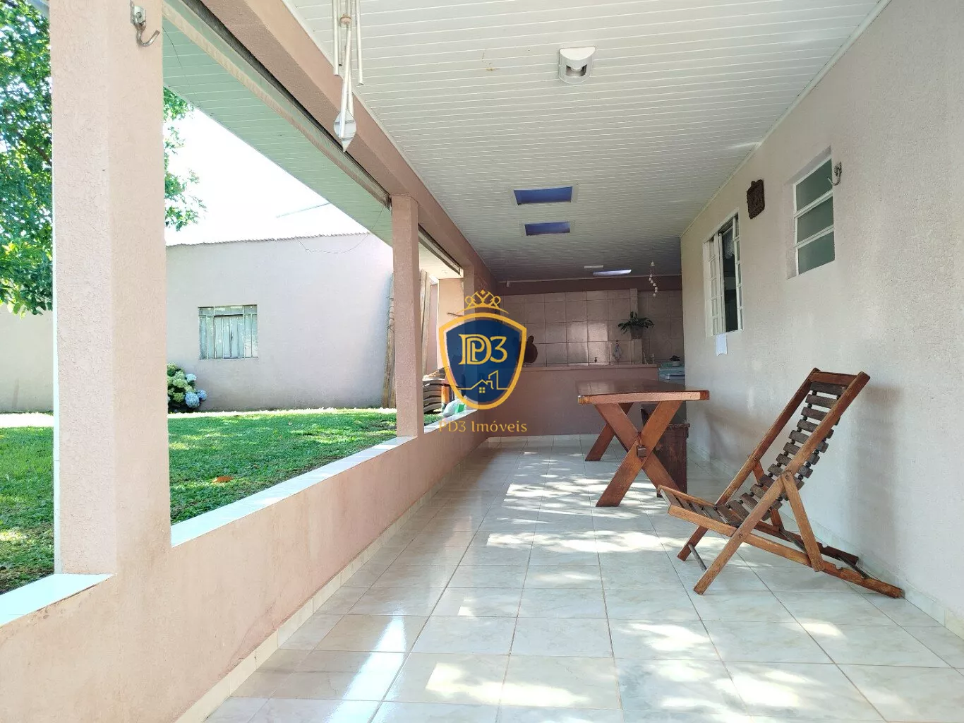 Na parte dos fundos tem uma ampla área externa com espaço gourmet, playgraund, árvores frutífera, espaço para montar piscina e amplo espaço de garagens.