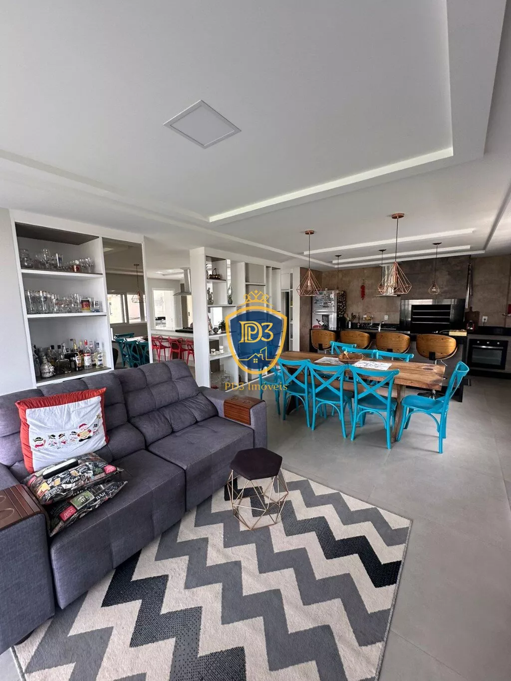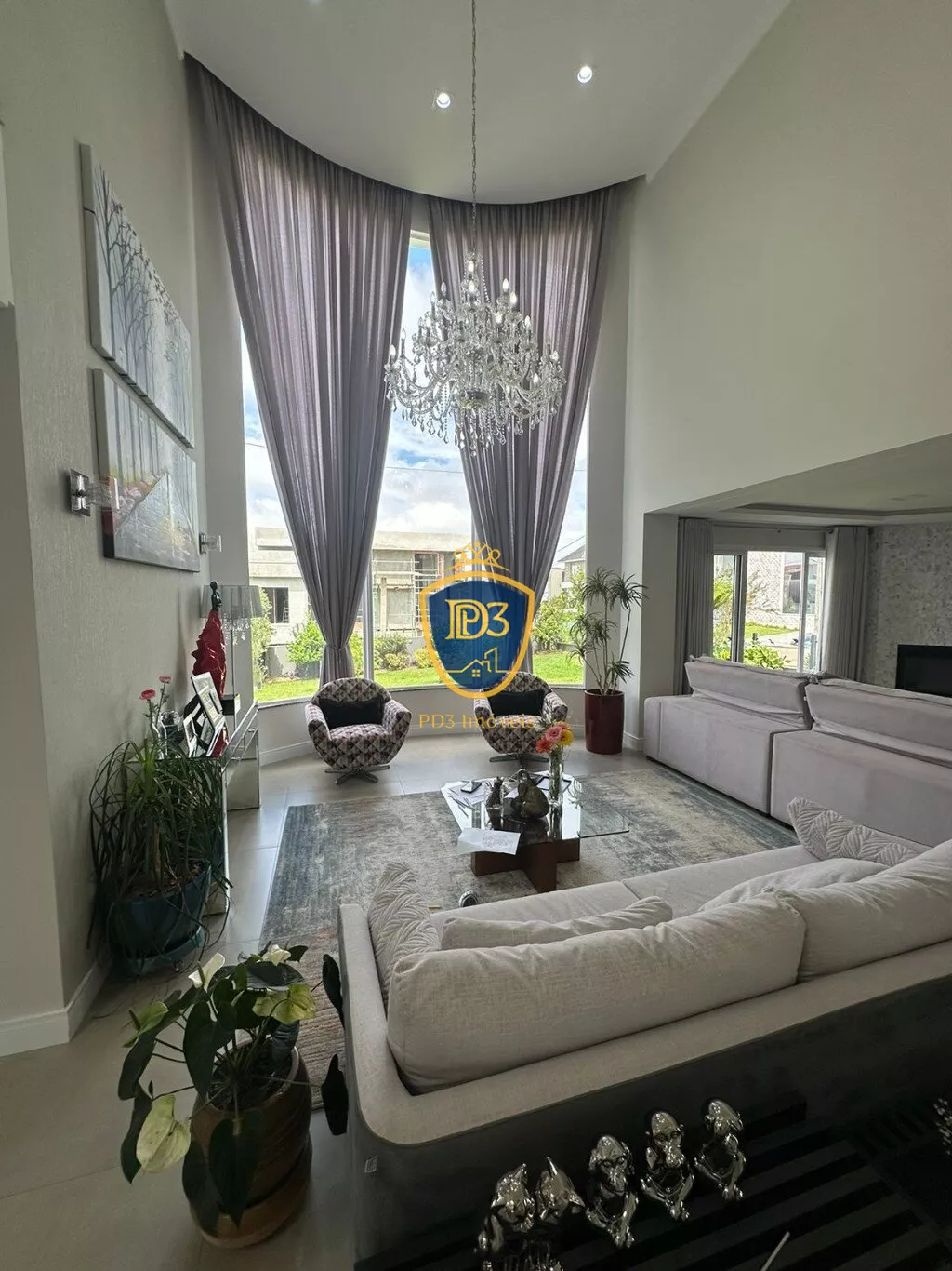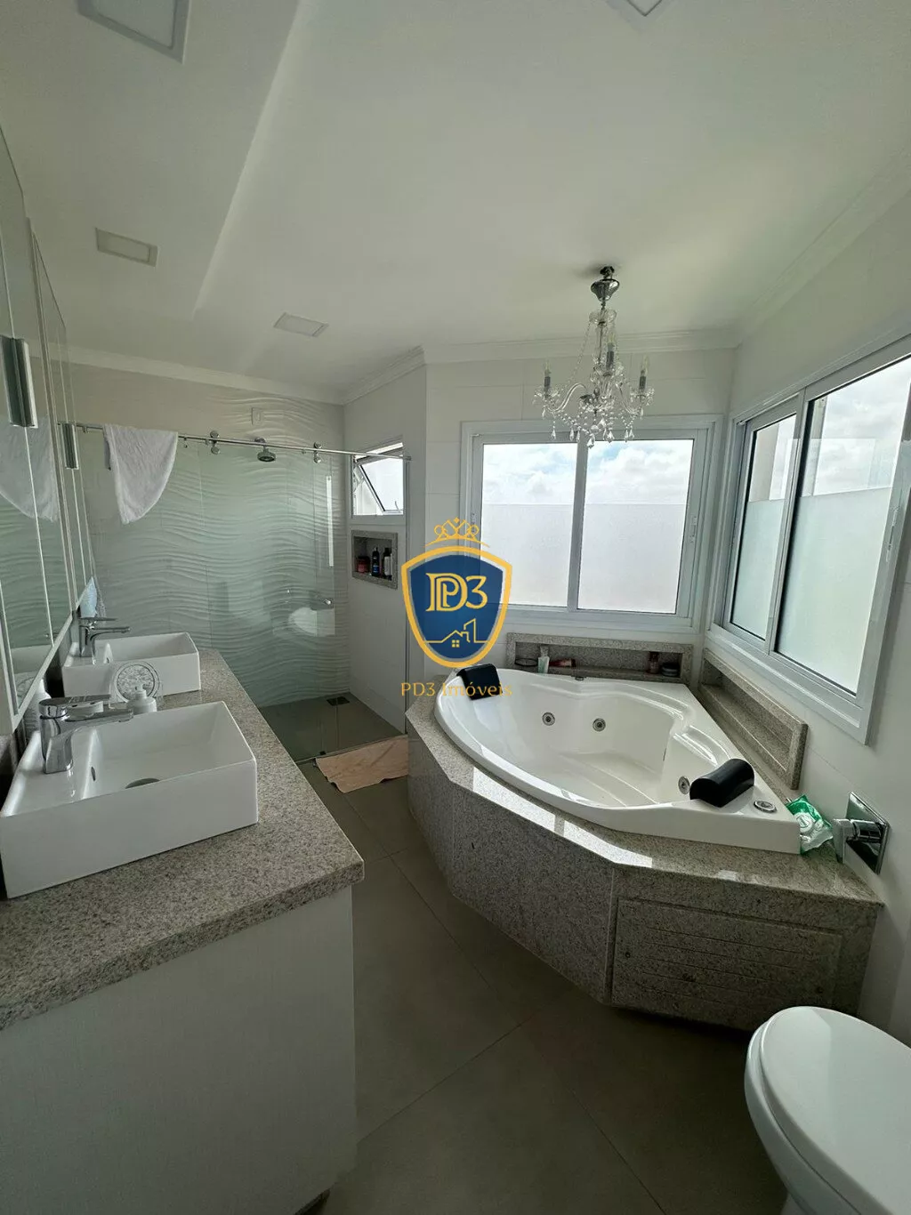3 suítes com closet, (sendo uma delas máster), Banheiro Social, sala de TV; adega, ateliê, lavabo, ampla cozinha e área Gourmet, despensa, ampla lavanderia.