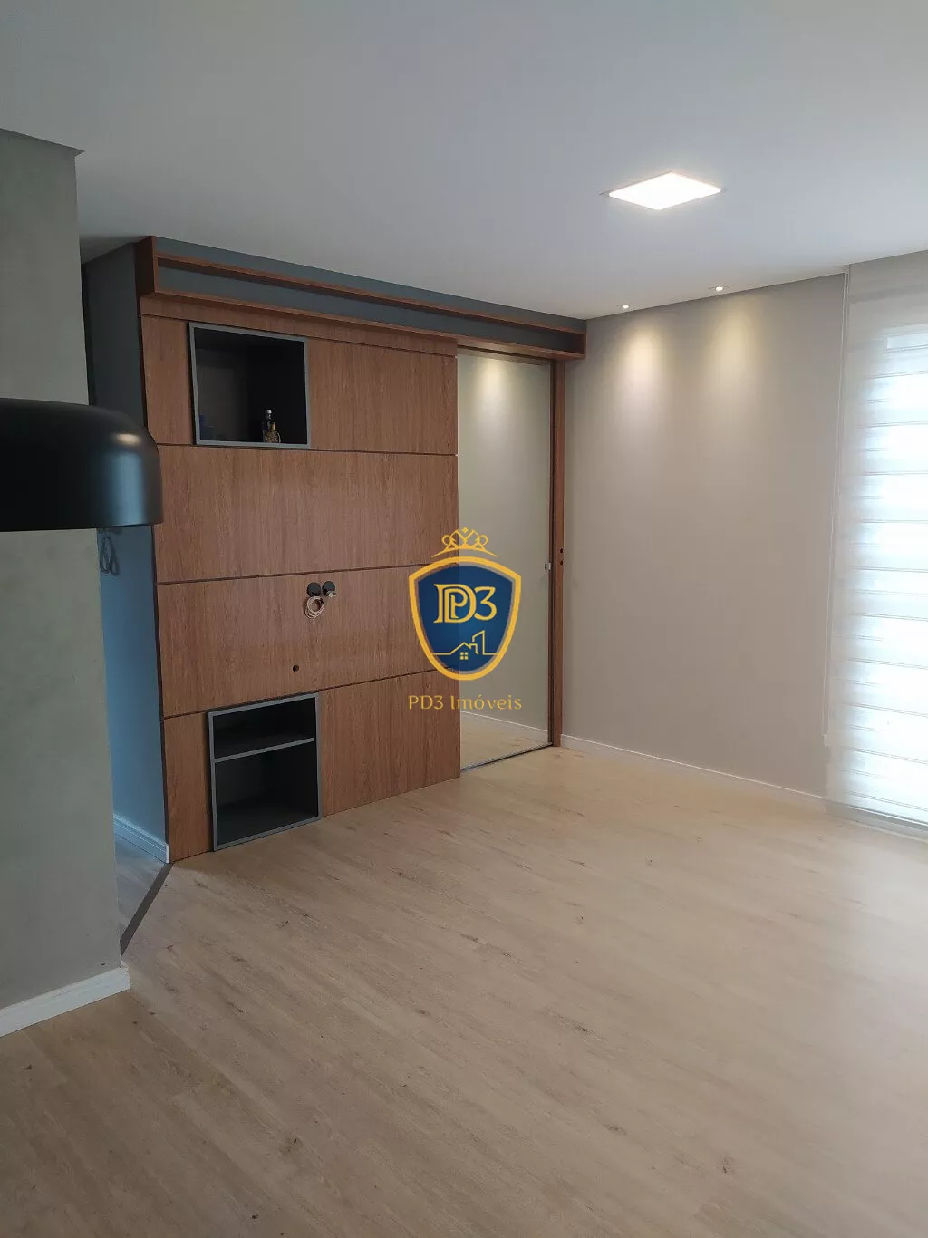 Na sala possui teto rebaixado em gesso e iluminação embutida.