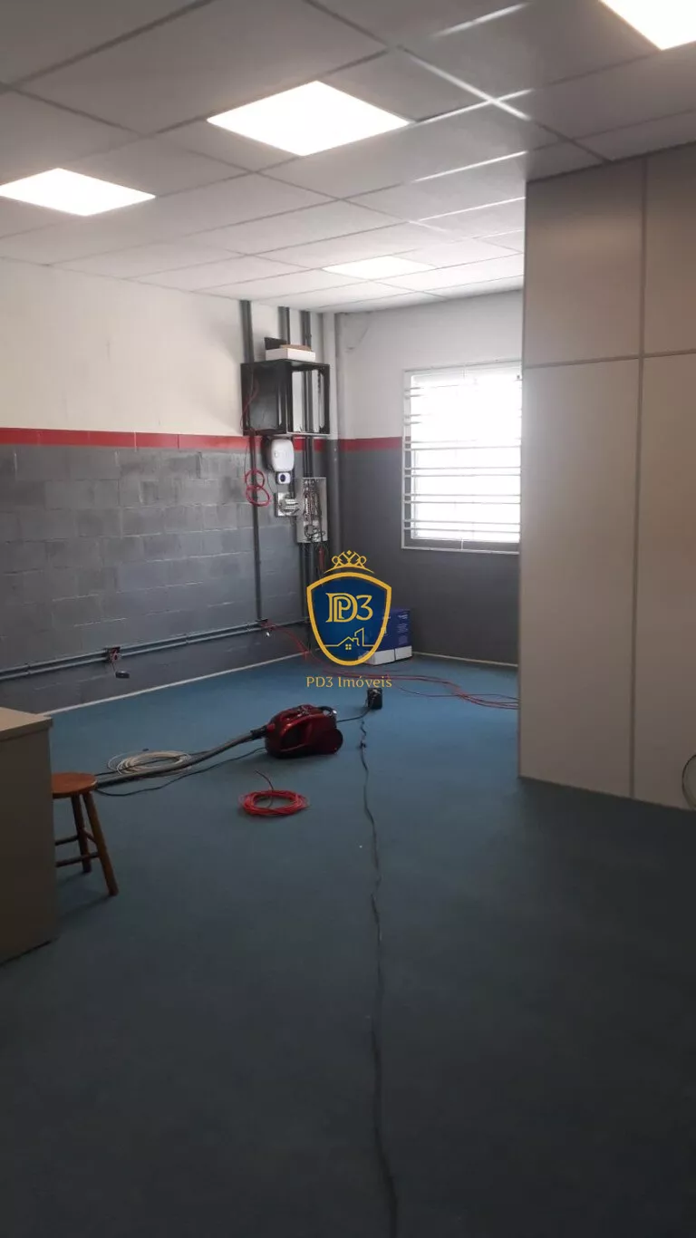 Tem extrutura para por mezanino, conta com cozinha, banheiro femenino e masculino e escritório.