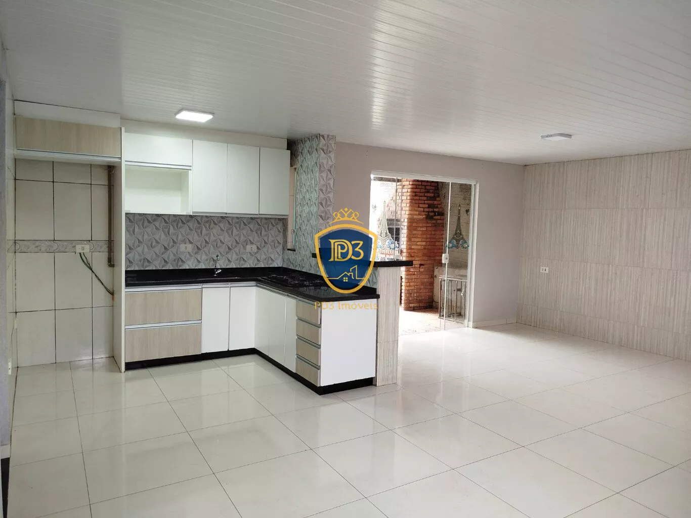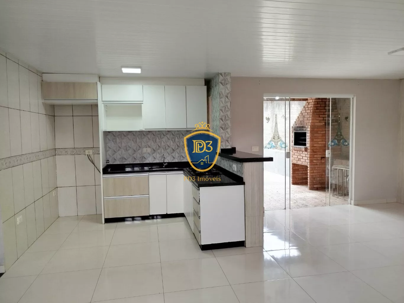 Conta com amplo quintal na parte da frente e espaço de churrasqueira coberta nos dundos com área de serviços.