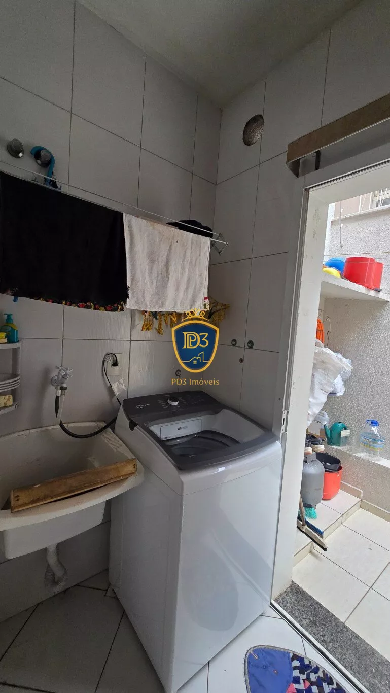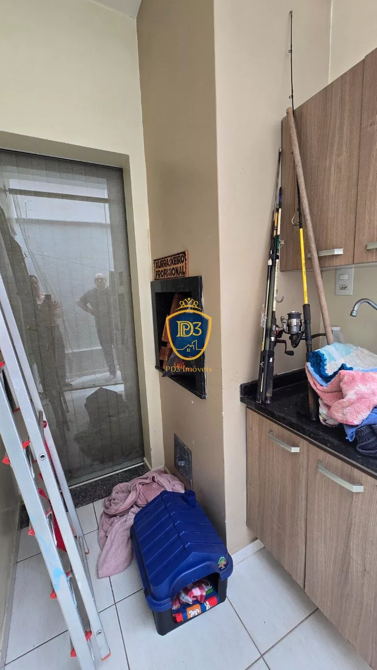 No piso inferior contém: sala de tv e copa integradas, lavabo, cozinha com armários planejados, lavanderia, espaço com churrasqueira e garagem para um veículo.